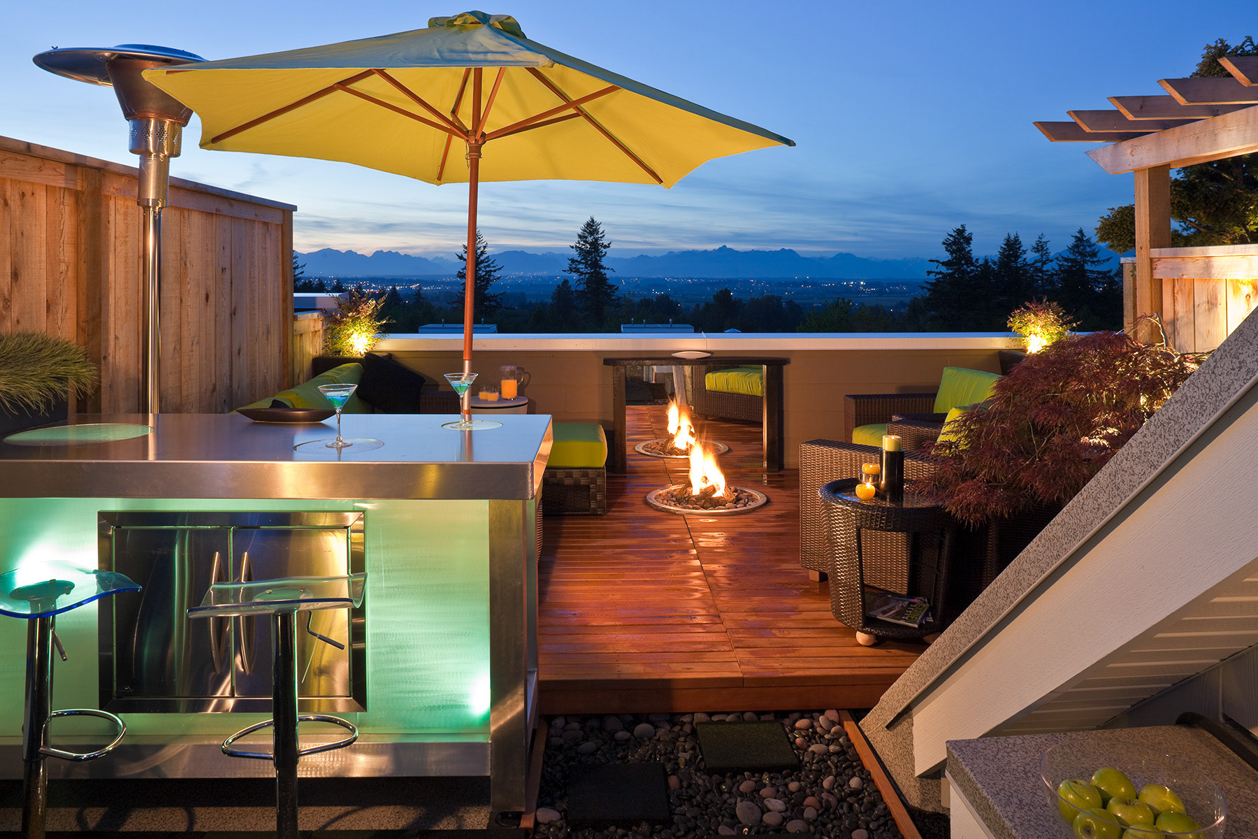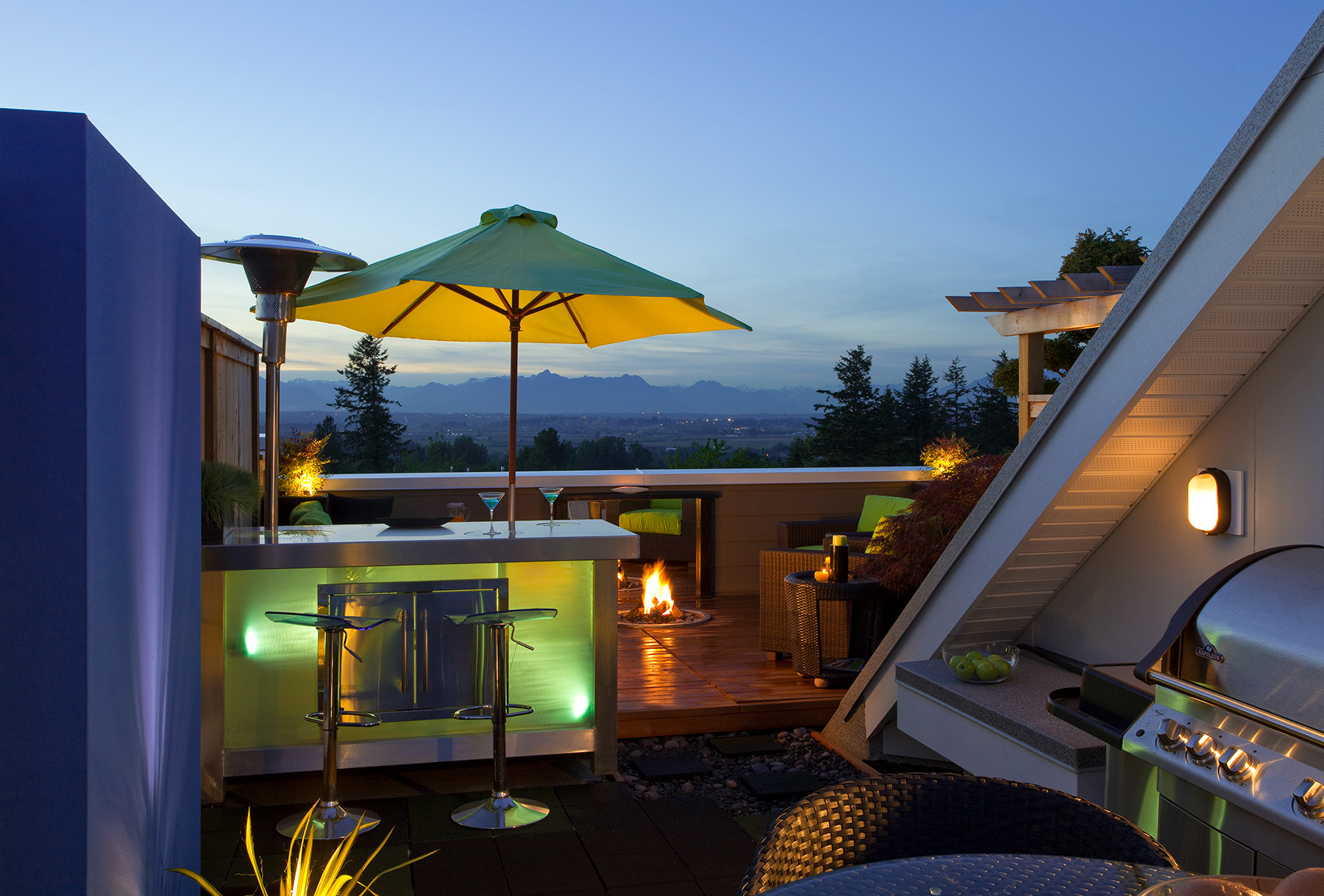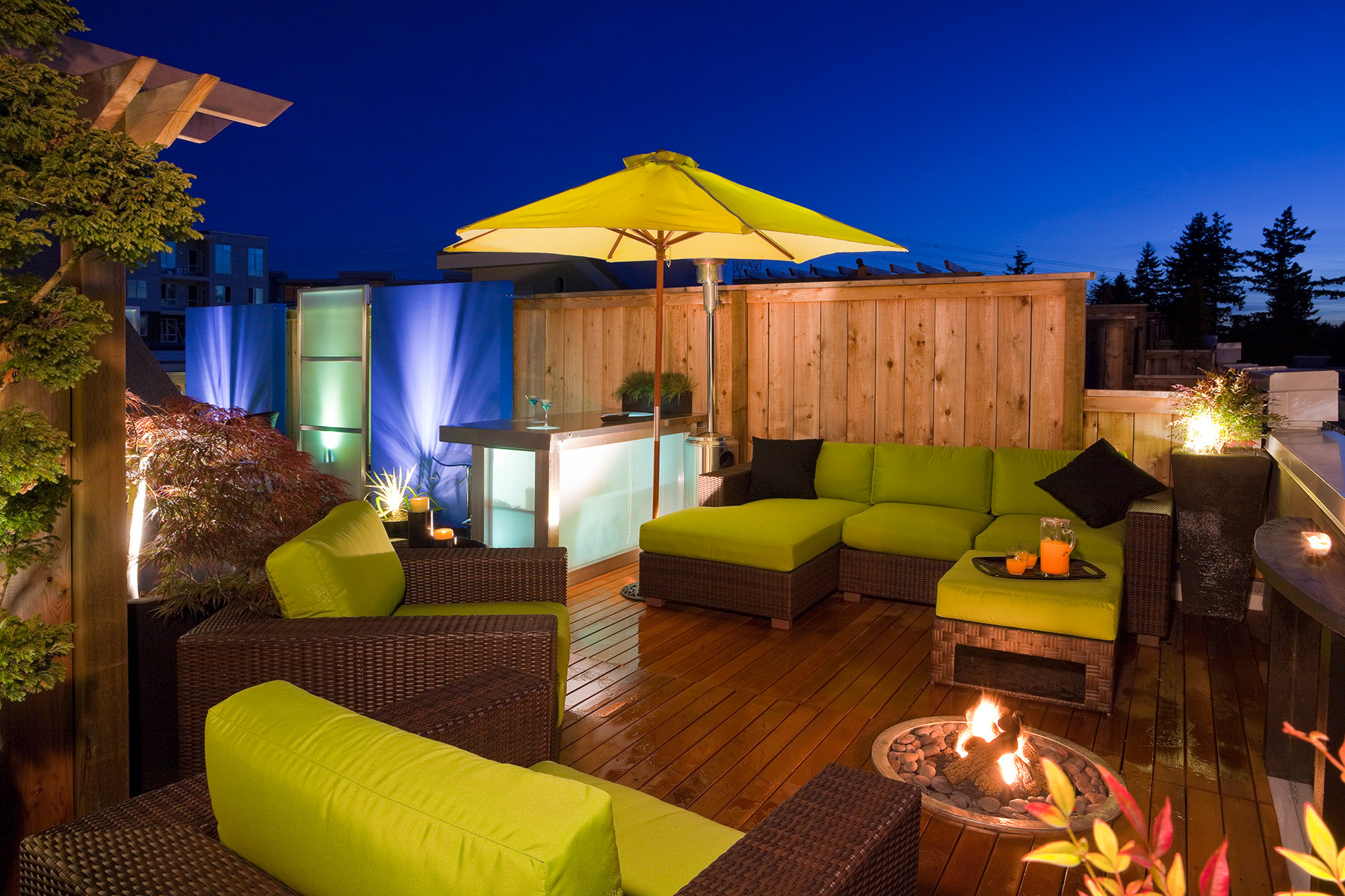 Modernism, comfort and privacy, using top quality surfaces and materials on this 500 sq' roof patio.