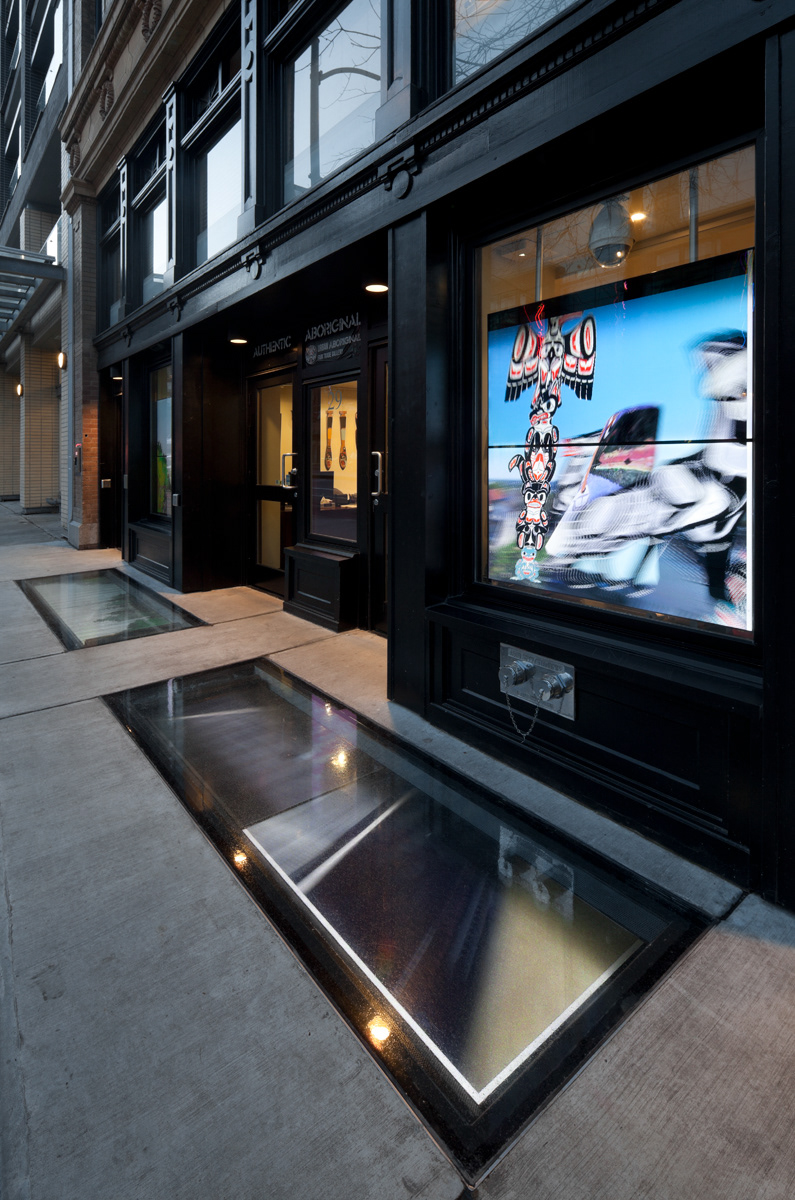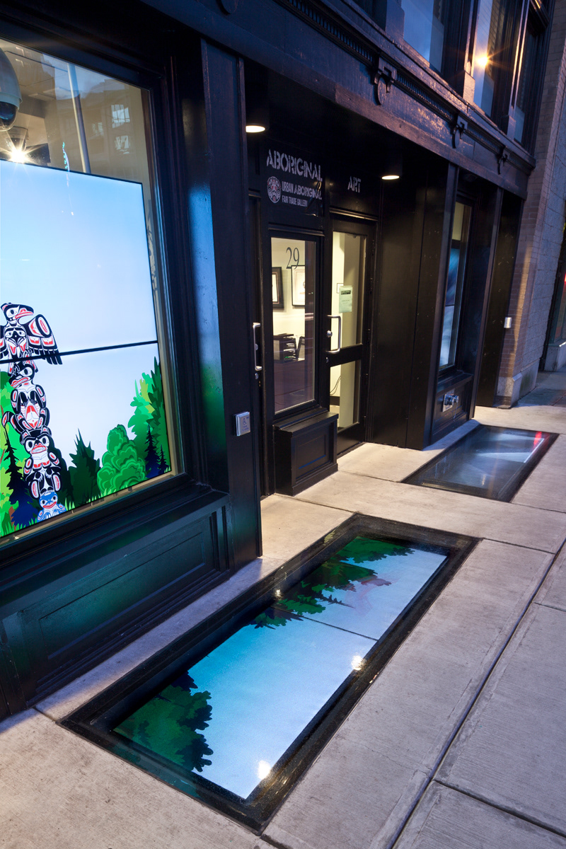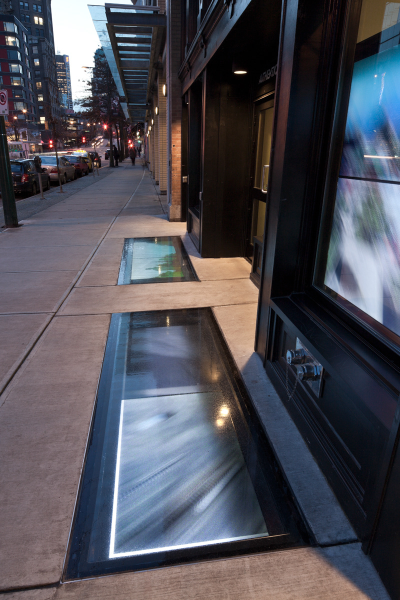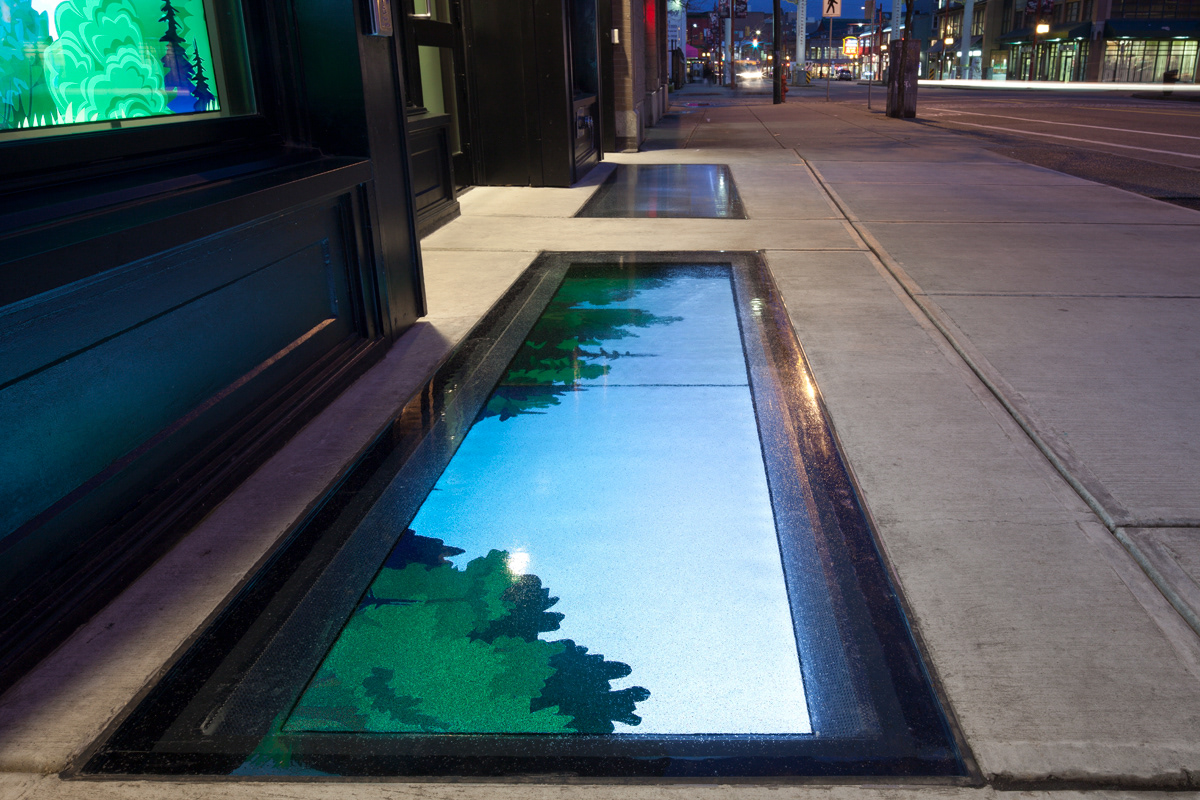 Illuminated Sidewalk Glass Panels by Joel Berman Glass Studios.