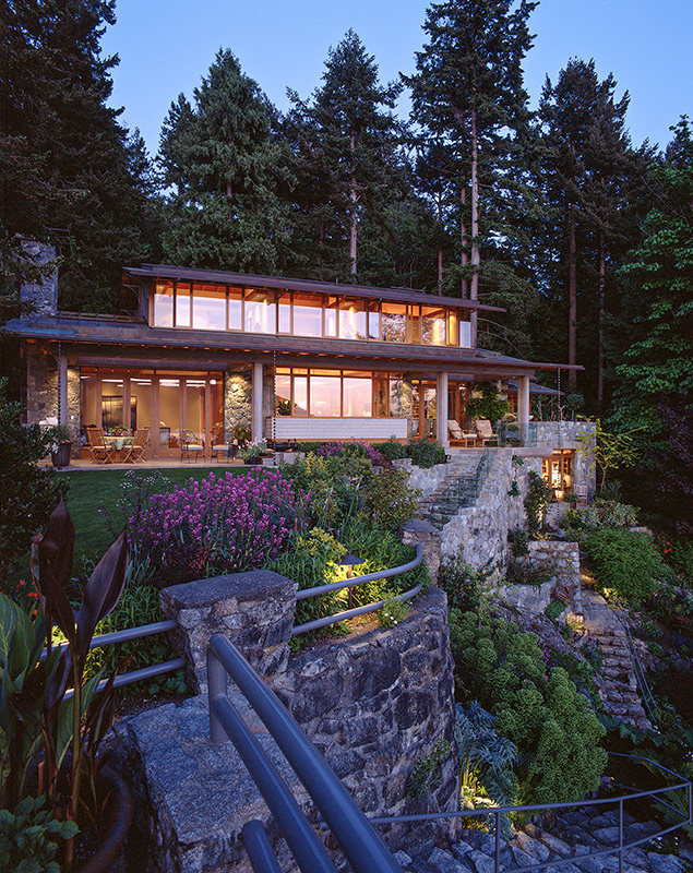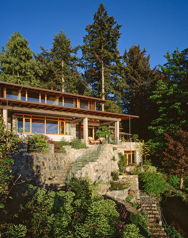 Excellent combination of materials come together in this fine west coast style residence and gardens on a difficult site.