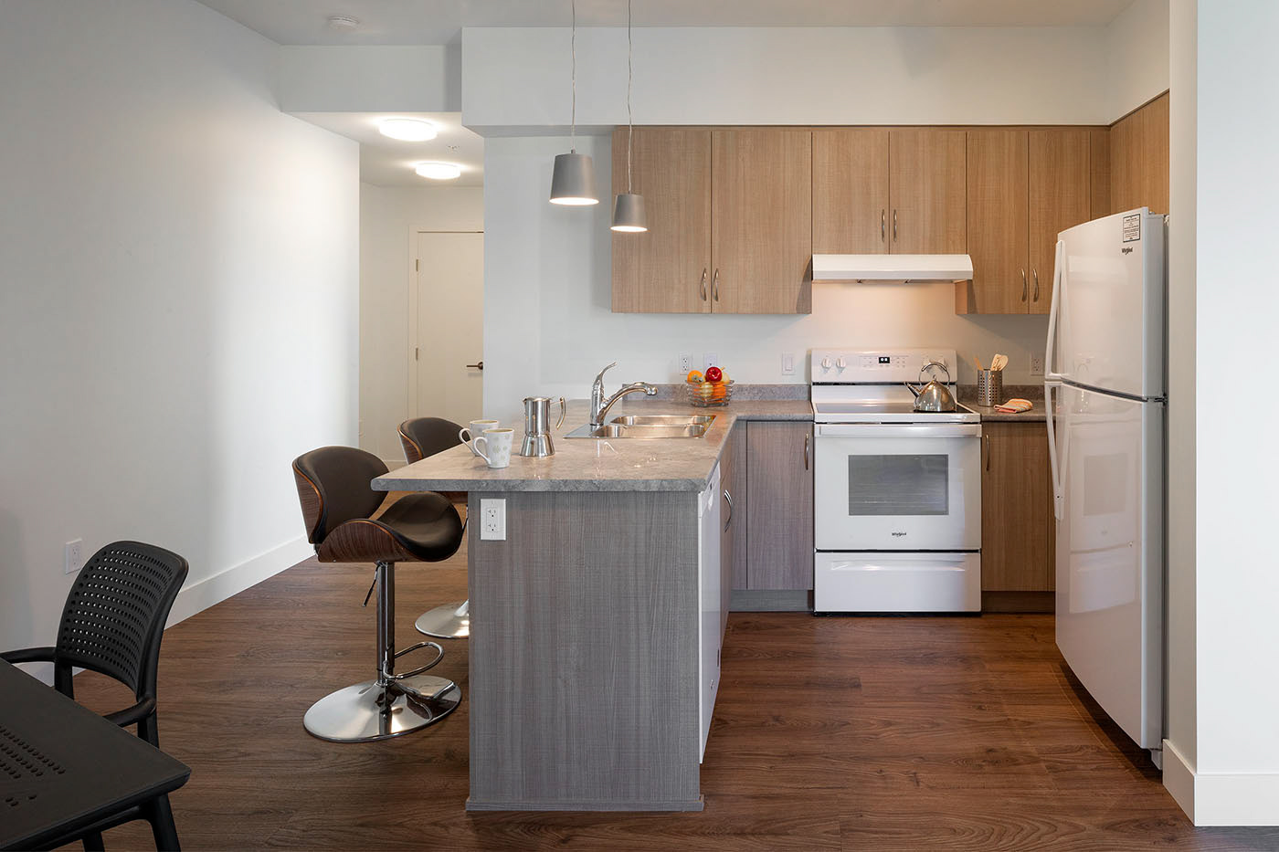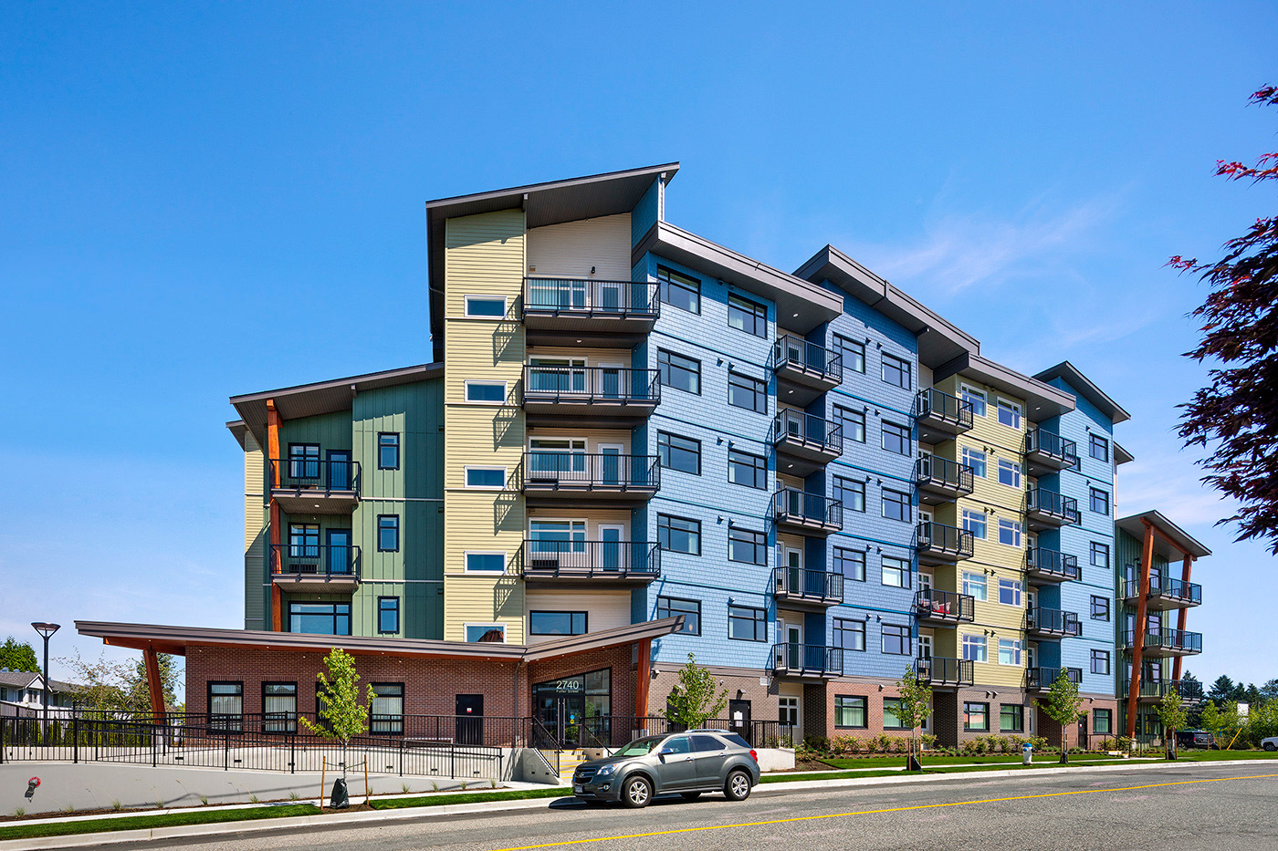 Multi-residential affordable housing building with 60 suites of varying sizes. Incorporating 9 units in a separate secure area for use by the Autumn House Youth Housing Program.